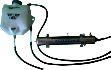 Locates within the engine compartment drawing very low amperage from the battery, small amounts of hydrogen are produced 'on demand' and injected into the combustion via the air intake. A bespoke electronic power management system only produces enough gas for the demand, there is no hydrogen stored within the system. The technology substantially augments all reductions already provided by catalytic converters and other currently required emission reduction technologies.